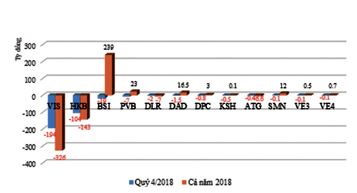 Không báo lỗ cả năm lên đến hàng trăm tỷ đồng như VIS hay HKB hay đối diện án hủy niêm yết như DLR, nhiều doanh nghiệp khác như PVB, BSI, VE3, VE4, DAD… vừa báo lỗ trong quý IV/2018, kéo tụt thành quả lợi nhuận đạt được sau 9 tháng.