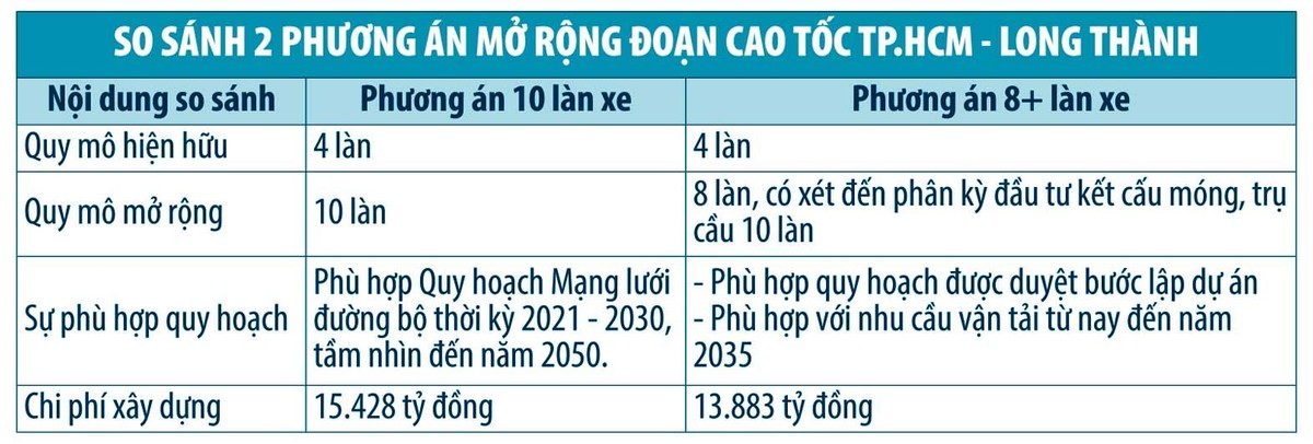 Tại Văn bản số 2024/BC-VEC, VEC cho biết đã nghiên cứu mở rộng đoạn tuyến lên 10 làn xe, nhưng ngoài việc phát sinh thêm 1.545 tỷ đồng so với phương án 8+, phương án này còn có hiệu quả đầu tư không cao do nhu cầu sử dụng 10 làn xe trong giai đoạn đầu hạn chế.