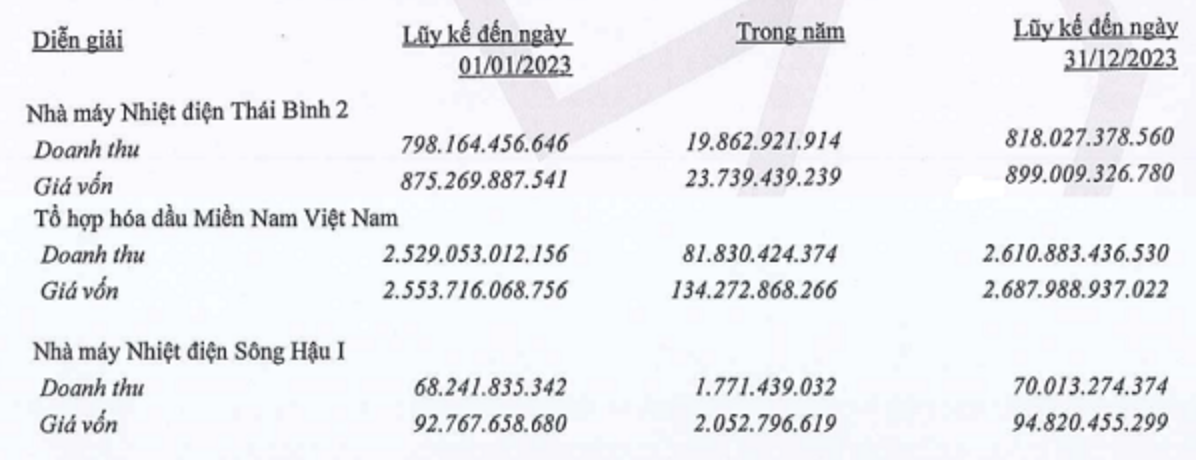 Thứ hai, đến thời điểm kết thúc kiểm toán, AASC vẫn chưa thu thập được đầy đủ bằng chứng kiểm toán thích hợp liên quan đến các dự án: Nhà máy Nhiệt điện Thái Bình 2, Tổ hợp hóa dầu Miền Nam Việt Nam và Nhà máy Nhiệt điện Sông Hậu 1, do đó không thể đánh giá được sự phù hợp của doanh thu, giá vốn và dự phòng giảm giá hàng tồn kho mà Công ty ghi nhận từ các dự án này cũng như ảnh hưởng của các số liệu đó tới BCTC.