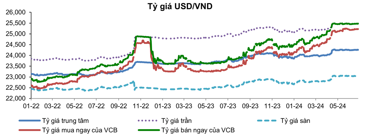 Mặt bằng lãi suất huy động sau khi tạo đáy cũng có tín hiệu nhích tăng trở lại với mức tăng khoảng 20 - 40 điểm cơ bản. Tỷ giá giao dịch trung bình của VND trong năm 2024 được dự báo cao hơn đáng kể so với năm 2023.