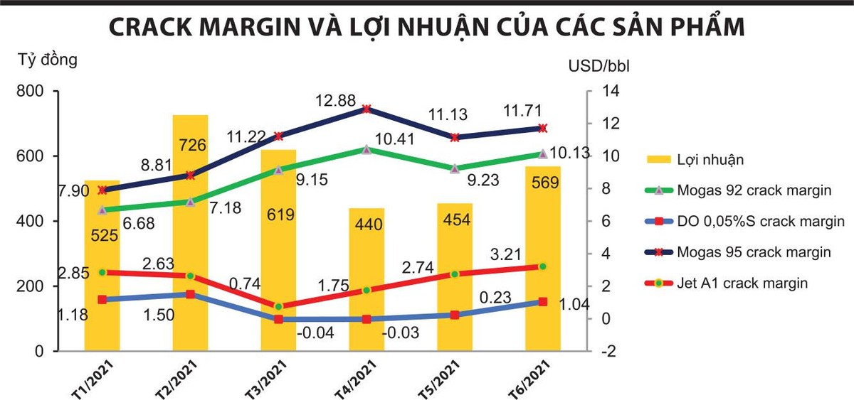 Cụ thể, crack margin (chênh lệch giá) của các mặt hàng trong tháng 5 và 6 đã có sự cải thiện rõ rệt.