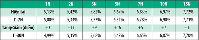 Trên thị trường thứ cấp, NĐT nước ngoài bán ròng tuần thứ ba liên tiếp với khối lượng đạt 98 tỷ đồng, giảm mạnh so với khối lượng bán ròng hơn 1.300 tỷ đồng ở tuần trước. Lợi suất tuần này tăng trên tất cả các kỳ hạn (xem bảng).