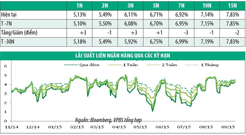 Nhu cầu vốn ngắn hạn được hỗ trợ từ nguồn tín phiếu và trái phiếu đáo hạn, dẫn tới việc thanh khoản bị dư thừa, lãi suất liên ngân hàng do vậy giảm. Nhưng vào ngày đầu tiên của tháng 10, lãi suất bắt đầu tăng nhẹ trở lại, đặc biệt tại lãi suất cho vay qua đêm vì các ngân hàng có nhu cầu vay vốn để đảm bảo nguồn dự trữ bắt buộc đầu tháng.