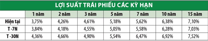 Theo số liệu từ Bloomberg, lợi suất bắt đầu tăng dần trên hầu hết các kỳ hạn ngoại trừ kỳ hạn 1 năm. Xu hướng tăng của lợi suất có phần chậm lại so với tuần trước. Trái phiếu 1 năm giảm nhẹ 9 điểm cơ bản, xuống 3,75%/năm, trong khi trái phiếu 2 và 3 năm tăng lần lượt 8 và 6 điểm cơ bản, lên mức lợi suất 4,26%/năm và 4,61%/năm. Lợi suất trái phiếu 5, 7, 10 và 15 năm ghi nhận lần lượt tại 5,18%/năm (+13 điểm cơ bản), 5,62%/năm (+4 điểm cơ bản), 6,38%/năm (+10 điểm cơ bản) và 7,10%/năm (+7 điểm cơ bản).