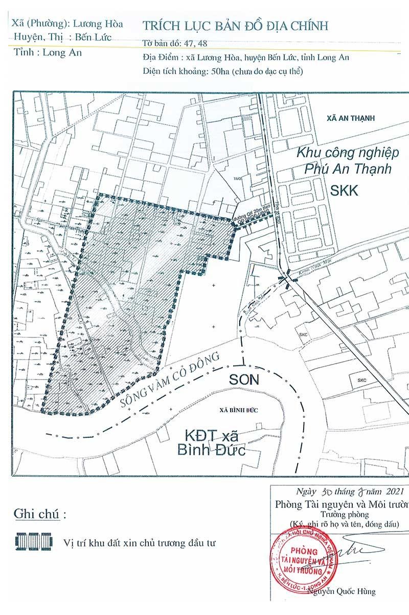 Thực hiện chỉ đạo của UBND tỉnh, Sở Kế hoạch và Đầu tư Long An chính thức kêu gọi đầu tư Dự án Trung tâm logistics tại xã Lương Hòa, huyện Bến Lức, với tổng diện tích 50 ha, thời hạn nộp hồ sơ đề nghị chấp thuận chủ trương đầu tư Dự án là hết ngày 30/8/2021.