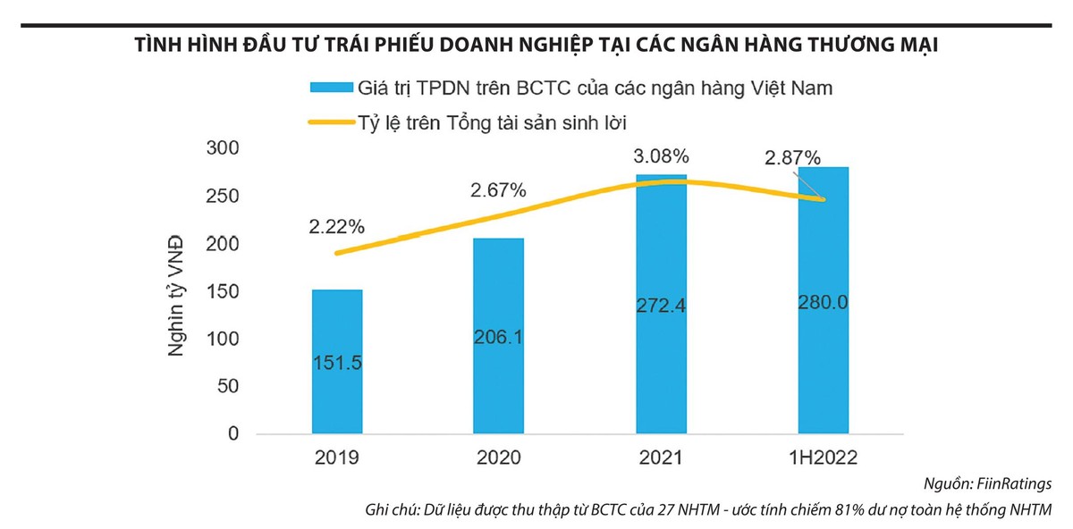 Theo số liệu của Ngân hàng Nhà nước, tính đến cuối năm 2021, có 41 tổ chức tín dụng nắm giữ 274.000 tỷ đồng trái phiếu doanh nghiệp, trong đó hơn 75% số lượng trái phiếu doanh nghiệp do 10 ngân hàng lớn nắm giữ là Techcombank, MB, VPBank, TPBank, BIDV, Vietcombank, VietinBank, HDBank, ABBank, SeABank. Tại một số ngân hàng, tỷ lệ trái phiếu doanh nghiệp nắm giữ có trị giá vượt 10% tổng tài sản.
