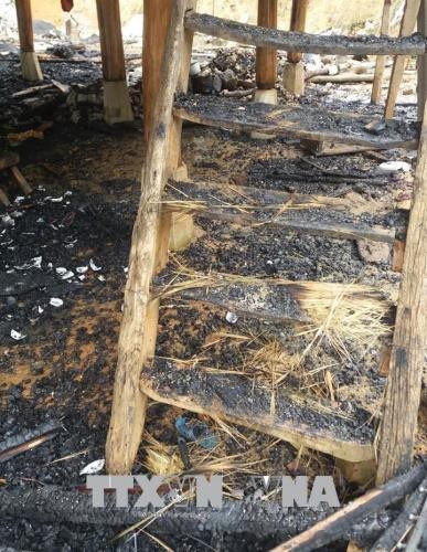 Hậu quả sau vụ cháy là tầng 2 căn nhà sàn cháy rụi hoàn toàn, lửa cháy vào các thân cột sâu khoảng 5cm. Lực lượng chữa cháy chỉ kịp lấy được những bao thóc ở dưới gầm nhà sàn ra ngoài.
