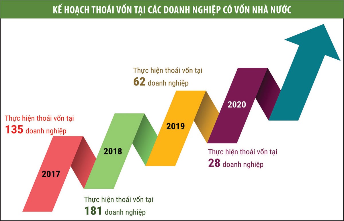 Trong giai đoạn 2017 - 2020 trên cơ sở các tiêu chí phân loại doanh nghiệp nhà nước, doanh nghiệp có vốn nhà nước thuộc các ngành, lĩnh vực, phấn đấu hoàn thành thoái vốn tại các doanh nghiệp mà Nhà nước không cần nắm giữ, tham gia góp vốn.