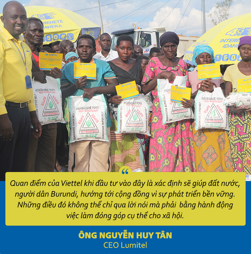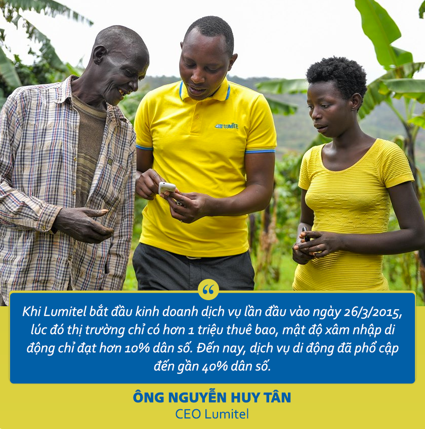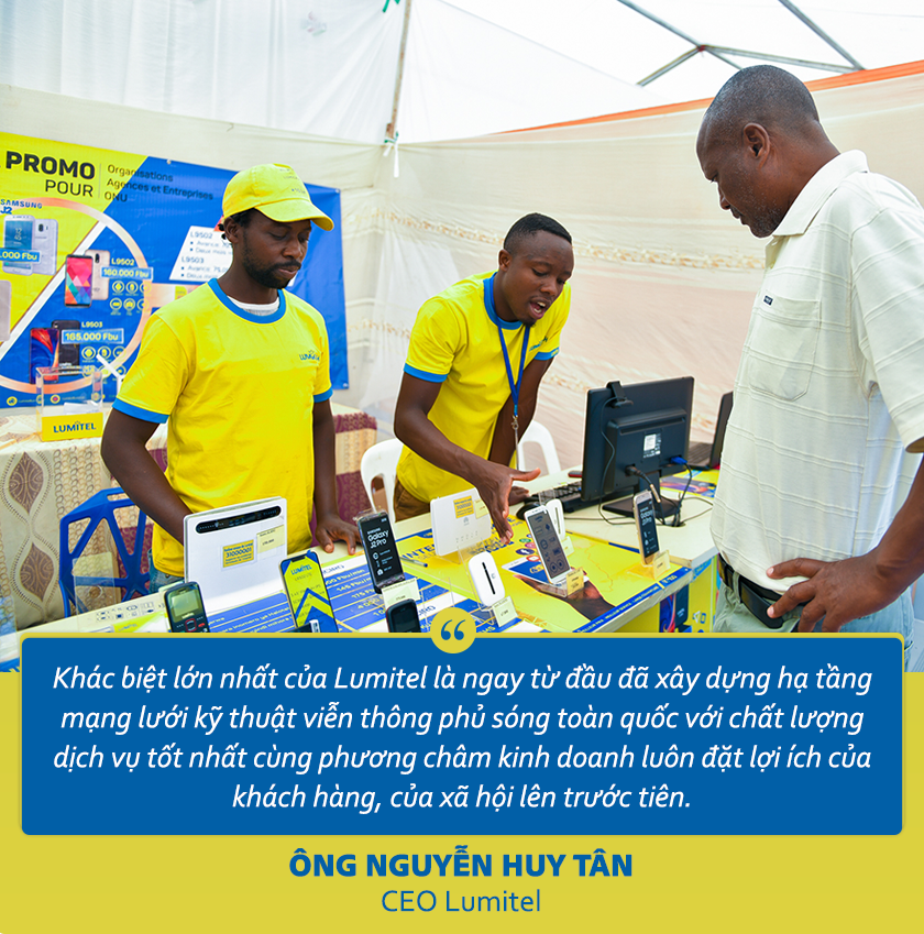 CEO Nguyễn Huy Tân: Hiện nay, Lumitel được người dân Burundi biết đến với hình ảnh một công ty viễn thông có dịch vụ tốt nhất, giá cước tốt nhất và chăm sóc khách hàng chu đáo nhất.
