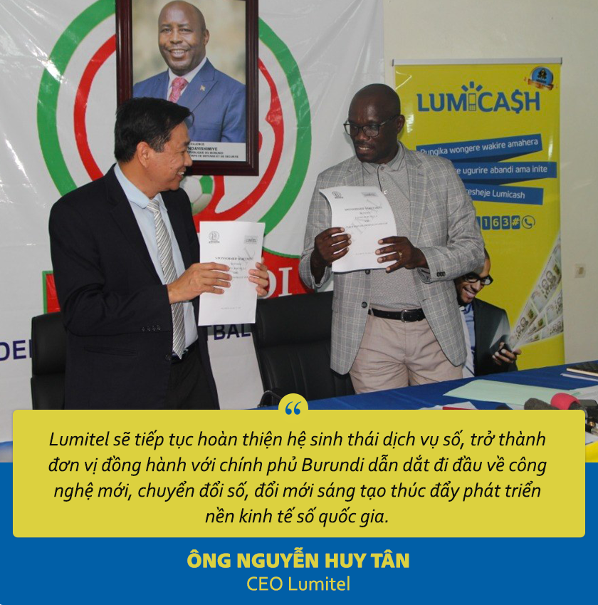 Tôi tin rằng, những nỗ lực toàn diện của Lumitel đã được người dân, chính phủ nước bạn cũng như cộng đồng quốc tế ghi nhận. Đó cũng là động lực để chúng tôi tiếp tục với con đường cống hiến hết mình vì sự phát triển của đất nước Burundi.