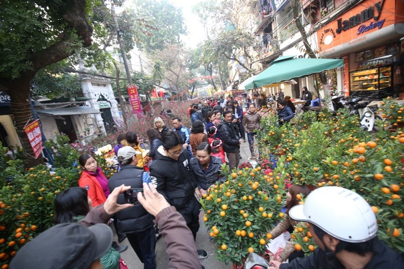 Dù có bận rộn đến mấy, ai cũng cố dành ra chút thời gian để được hòa mình giữa dòng người đông đúc và cảm nhận hương vị Tết truyền thống tại chợ hoa phố Hàng Lược.