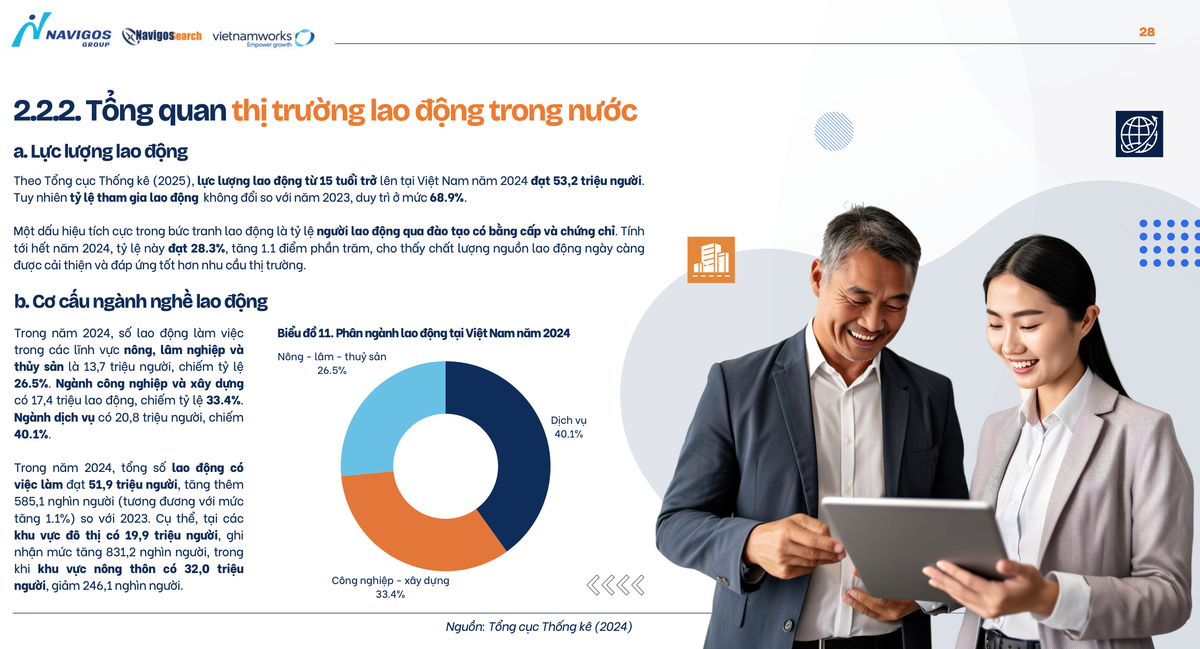 Việt Nam đang bước vào giai đoạn phát triển mạnh mẽ với sự bùng nổ của kinh tế số và chuyển đổi số, tạo ra nhiều cơ hội việc làm mới trong các lĩnh vực như Công nghệ thông tin, Tài chính ngân hàng, Sản xuất và Logistics. Theo báo cáo từ Navigos Group, nhu cầu nhân lực trong một số ngành đang tăng cao nhưng vẫn đối mặt với tình trạng thiếu hụt lao động chất lượng cao. Đặc biệt, các vị trí như Khoa học Dữ liệu (Data Scientist), Nghiên cứu AI (AI Researcher), Kỹ sư học máy (Machine Learning Engineer) và Chuyên viên Nghiên cứu dữ liệu (Data Researcher) đang trở nên quan trọng hơn bao giờ hết.