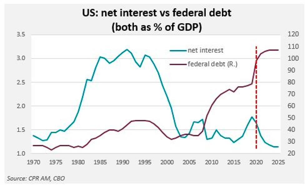 “Chi phí nợ của Kho bạc vẫn sẽ ở mức thấp nhất trong thập kỷ tới. Chúng ta đang bước vào một giai đoạn mới của nợ công nói chung”, Bastien Drut, chiến lược gia cấp cao của CPR Asset Management cho biết trong một cuộc phỏng vấn.