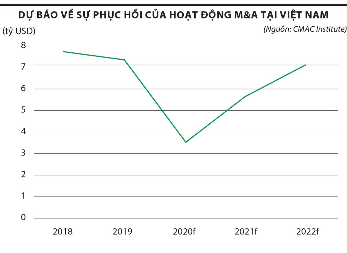 Hoạt động M&A tại Việt Nam cũng như trên toàn cầu giảm mạnh do các nhà đầu tư thận trọng, đồng thời quy định về cách ly nhằm phòng chống dịch gây trở ngại cho việc tìm hiểu, đánh giá và ra quyết định. Dự kiến, giá trị M&A năm 2020 tại Việt Nam chỉ đạt 3,5 tỷ USD, bằng 48,6% năm 2019.