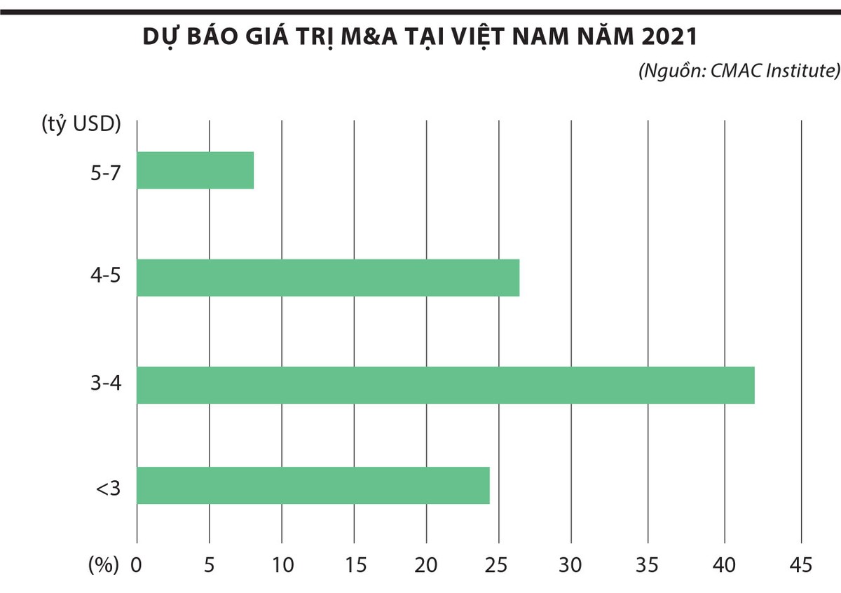 MAF Research và CMAC Institute dự báo, giá trị M&A năm 2021 sẽ ở quy mô 4,5 - 5 tỷ USD, quy mô thị trường hồi phục trở lại tương đương với mức bình quân giai đoạn 2014 - 2017.