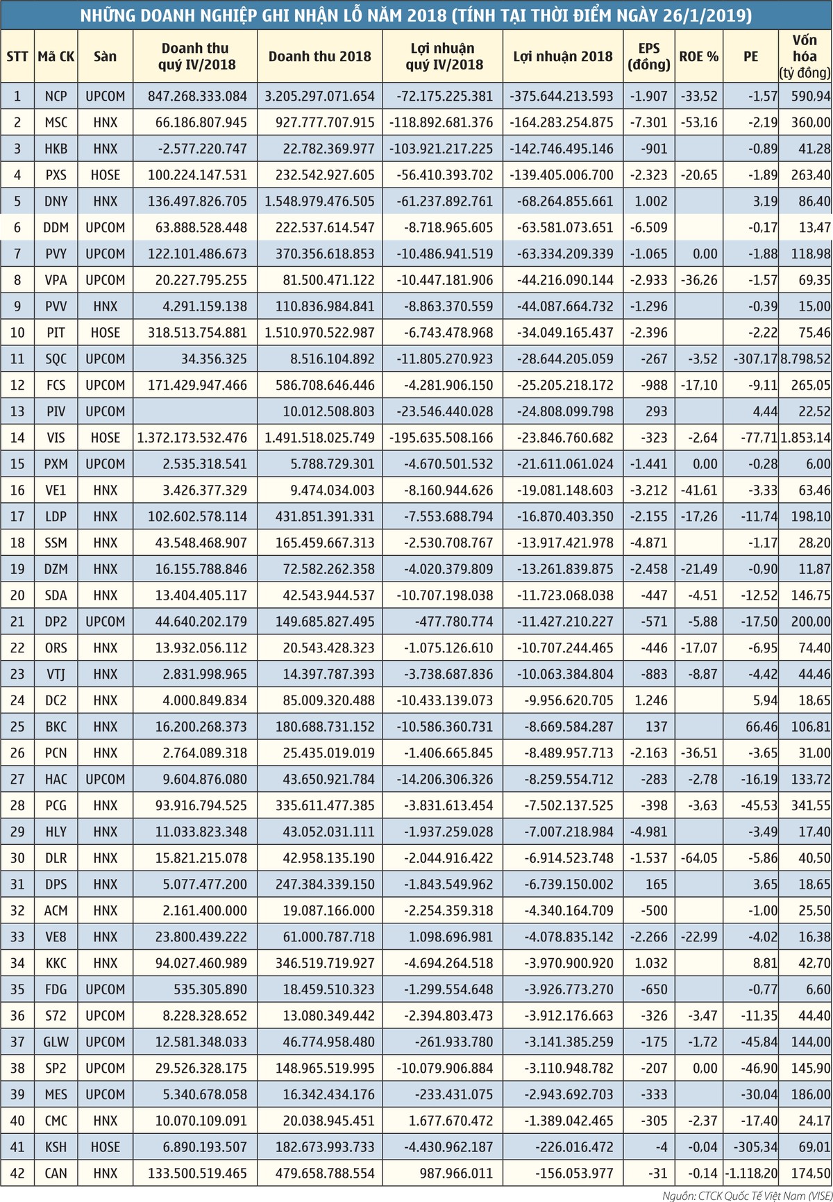 Ở nhóm doanh nghiệp ngành điện, Công ty cổ phần Nhiệt điện Cẩm Phả - TKV (NCP) và Công ty cổ phần Nhiệt Ðiện Quảng Ninh (QTP) đang là “đại diện” cho việc kinh doanh thua lỗ. NCP đang ghi nhận lỗ hơn 375 tỷ đồng trong năm 2018, trong khi NCP cũng lỗ hơn 300 tỷ đồng.