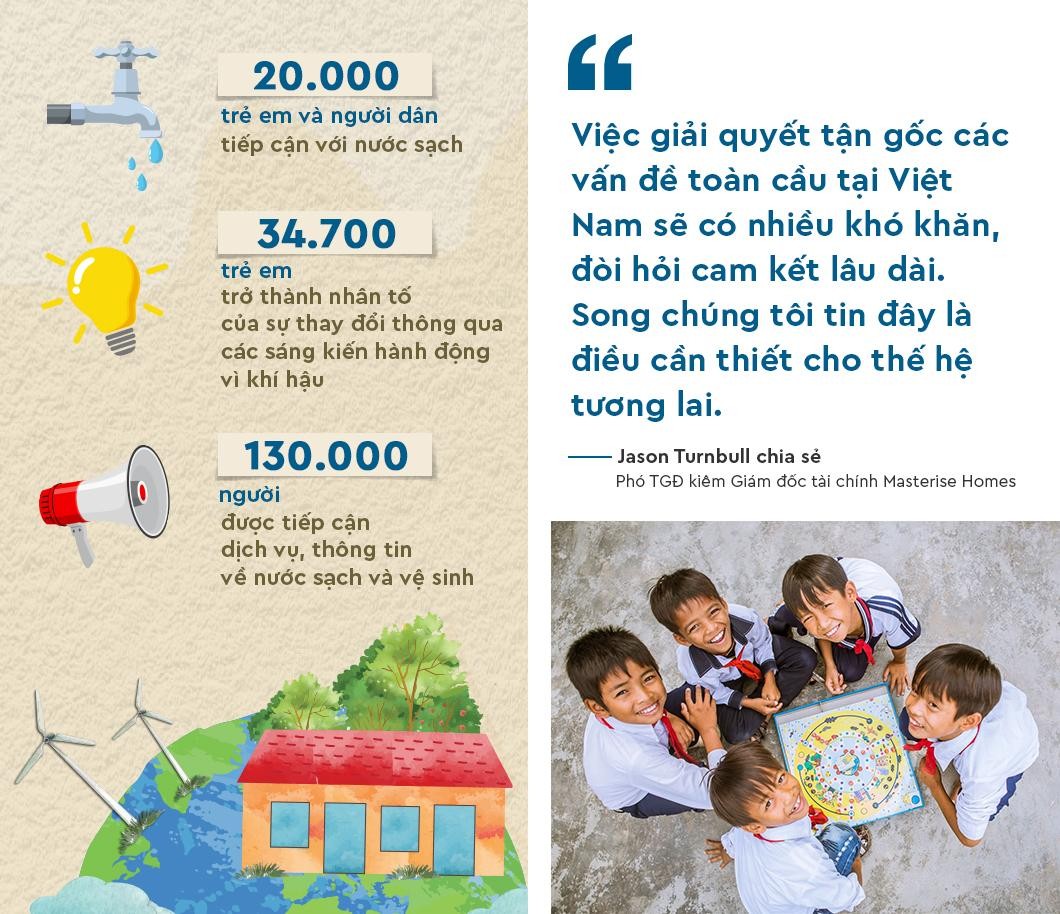 Theo ông Jason Turnbull, Phó tổng giám đốc kiêm Giám đốc tài chính Masterise Homes, thông qua dự án này, Masterise Group sẽ hỗ trợ sự phát triển của các trường học và cộng đồng thích ứng thông minh với biến đổi khí hậu. Tại những trường học này, tác động về khí hậu và môi trường được giảm thiểu nhờ áp dụng năng lượng xanh.