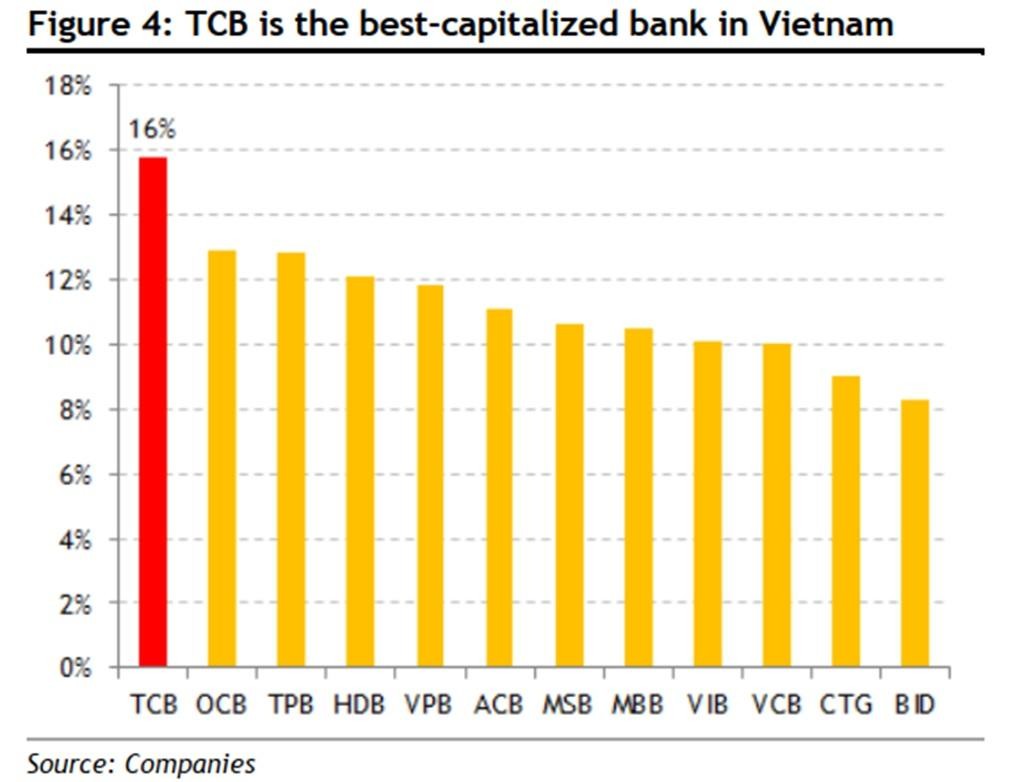 “TCB xứng đáng được định giá vượt trội dựa trên ROA cao (hơn 3% giai đoạn 2021-2023), nguồn vốn mạnh cho phép duy trì tăng trưởng giá trị sổ sách ở mức 20%/năm trong 3 năm tới”, các chuyên gia phân tích của UBS đánh giá.