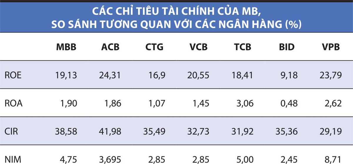 Nếu vẽ một đồ thị để so sánh các cổ phiếu trong ngành ở rất nhiều tiêu chí, nhiều khả năng MBB sẽ nằm ở trung tâm của biểu đồ đó, không phải là tốt nhất nhưng thường ở mức từ khá đến tốt.