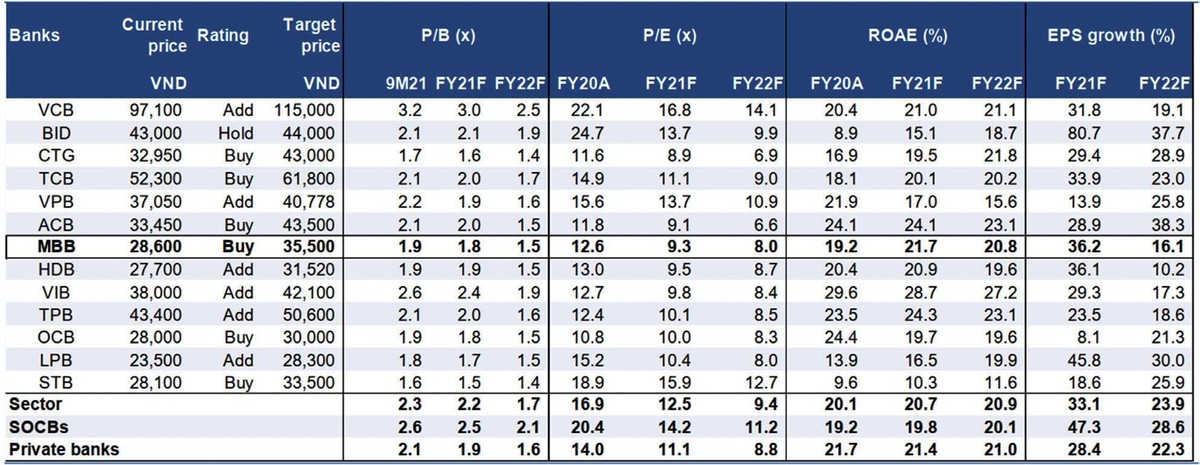 Trong quý III/2021, MB dành trên 1.778 tỷ đồng để trích lập dự phòng rủi ro tín dụng, cao gấp đôi cùng kỳ năm trước, nhưng lợi nhuận trước thuế vẫn tăng 29%, đạt hơn 3.898 tỷ đồng, lợi nhuận sau thuế đạt hơn 3.022 tỷ đồng.
