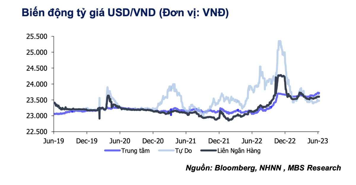 Trong năm 2023, trong viễn cảnh khi Fed sẽ dừng tăng lãi suất vào sau thời điểm nửa cuối năm 2023, cùng với lạm phát Việt Nam ở dưới mức 4,5% và tốc độ hồi phục của ngành du lịch, lữ hành nhanh, áp lực lên tỷ giá sẽ hạ nhiệt và chỉ tăng lên 23.900 VND/USD (tăng khoảng 1,5%).