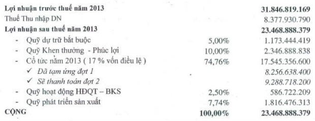 Kế hoạch phân phối lợi nhuận 2013