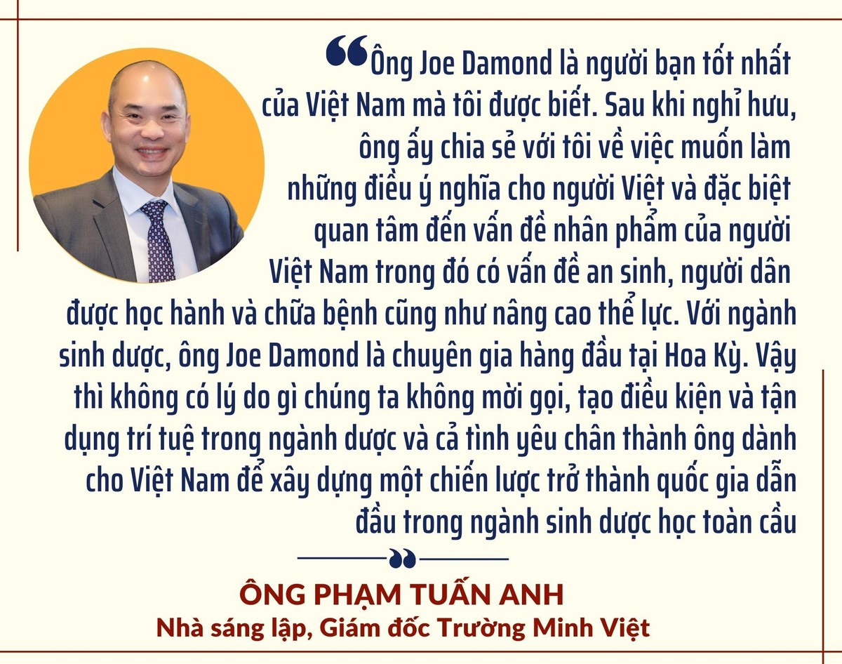 Tôi nghĩ rằng, Việt Nam nên coi ngành sinh dược là một ngành kinh tế được ưu tiên. Tôi có niềm tin mạnh mẽ rằng Việt Nam có cả nhu cầu lớn và cơ hội lớn để trở thành một nước dẫn đầu thế giới trong ngành sinh dược toàn cầu.