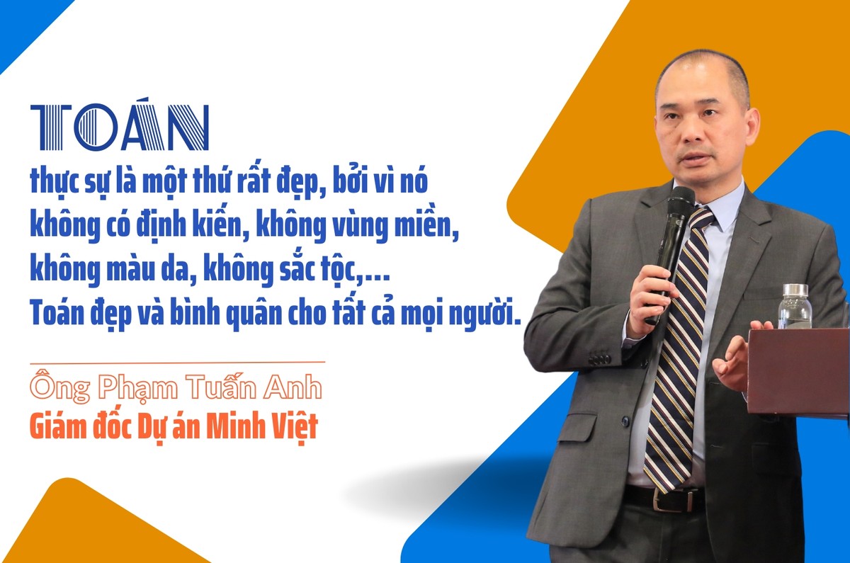 Chia sẻ về vai trò, ích lợi của Toán học, ông Phạm Tuấn Anh, người sáng lập, Giám đốc Dự án Trường Minh Việt (Minh Viet Academy – MVA) và Trường Toán Minh Việt (Minh Viet Shool of Math - MVSM) cho biết, trong cuộc cách mạng công nghệ lần thứ tư, thời đại của dữ liệu lớn, những thứ ứng dụng từ Toán như chương trình zoom rất phổ biến. Thế giới kết nối với nhau chặt chẽ qua không gian mạng chính là nhờ công của những người học giỏi Toán và tiếng Anh.