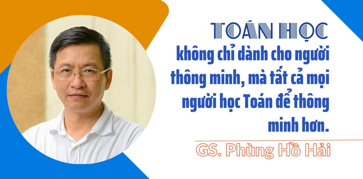 GS-TSKH. Phùng Hồ Hải nhấn mạnh, Toán học không chỉ dành cho người thông minh, mà tất cả mọi người học Toán để thông minh hơn. Xã hội hiện nay cần đến sự phối hợp của tất cả mọi người để công việc đạt được hiệu quả. Ai cũng cần học Toán để phát triển tư duy, để nhạy bén hơn trong suy nghĩ, để giải quyết những vấn đề cấp thiết, gần gũi, dân sinh thường nhật.