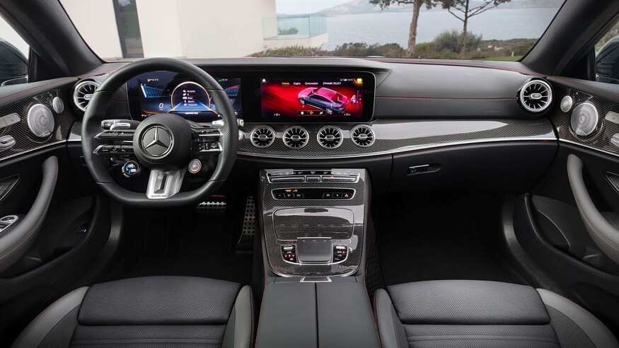Nội thất E-Class Coupe và Convertible được nâng cấp khá nhiều. Cùng với các tùy chọn bọc da mới cho ghế ngồi, các điểm nhấn trang trí và vô lăng mới, Coupe và Cabriolet giờ đây còn được trang bị hệ thống thông tin giải trí Mercedes-Benz MBUX tiêu chuẩn. Hệ thống này đi kèm với màn hình cảm ứng 12,3 inch cỡ lớn tương thích Apple CarPlay và Android Auto cùng cụm đồng hồ kỹ thuật số 12,3 inch.