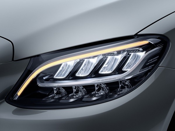 Nâng cấp dễ nhận ra ở ngoại thất C-Class mới chính là hệ thống đèn chiếu sáng và thiết kế mâm xe. Trên phiên bản C 200, cụm đèn LED toàn phần được thiết kế xếp lớp 2 tầng, 4 khoang với các tinh thể liền kề, tạo ra hiệu ứng 3D đẹp mắt. Đặc biệt, phiên bản C 250 Exclusive và C 300 AMG được trang bị công nghệ đèn thông minh MULTIBEAM với tầm chiếu sáng xa kỷ lục.