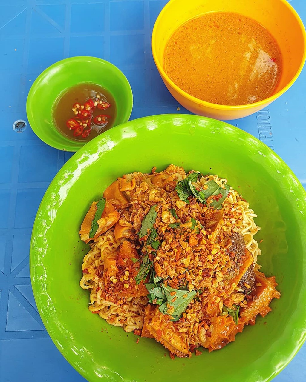 Mì phá lấu: Ngày mưa ở TP.HCM, nếu chưa biết ăn gì, bạn có thể tìm đến một quán phá lấu bò để thưởng thức những miếng lòng bò giòn sựt cùng nước súp beo béo, âm ấm, thơm mùi ngũ vị hương. Đặc biệt khi phá lấu ăn cùng mì gói sẽ giúp chiếc bụng của bạn no nê hơn. Có nhiều địa điểm phá lấu hấp dẫn như quán dì Nũi, dì Phương, cô Thảo hay những quán cóc ở quận 4. Giá: 20.000-30.000 đồng/suất.