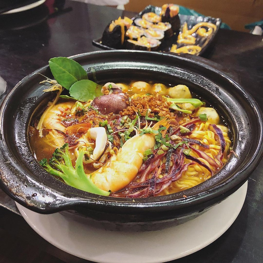 Mì cay là món ăn rất được lòng giới trẻ, đặc biệt vào buổi tối hay những ngày mưa lạnh. Một tô mì cay đầy đủ gồm mì gói Hàn Quốc, hải sản, thịt bò tươi, kim chi... ăn cùng nước dùng với những cấp độ cay khác nhau. Giá mì cay khoảng 35.000-45.000 đồng/phần. Bạn có thể lựa chọn các thương hiệu mì cay nổi tiếng ở Sài thành như mì cay Sasin, Naga...