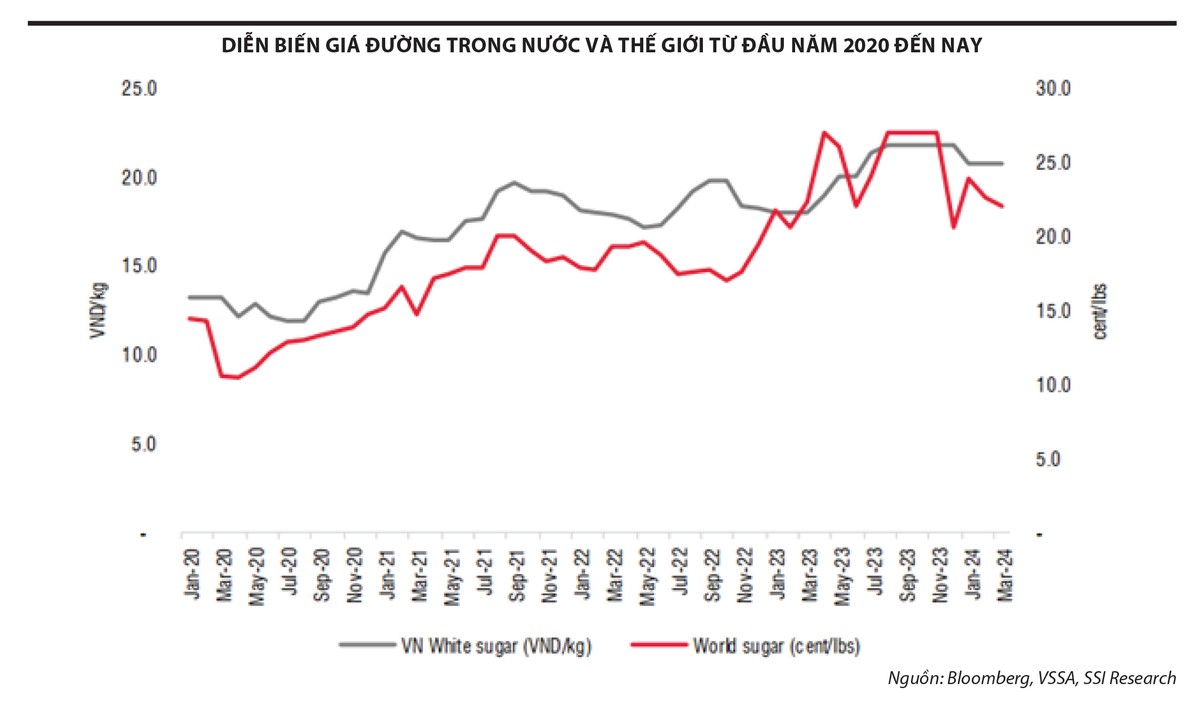 Công ty Chứng khoán SSI cho rằng, trong ngắn hạn, giá đường thế giới không tác động trực tiếp đến giá đường trong nước, do đường nhập khẩu đang được giám sát chặt chẽ và tuân thủ chính sách chống bán phá giá, chống trợ cấp. Trong khi đó, Thái Lan đang phải chịu hạn hán nghiêm trọng, ảnh hưởng đến sản lượng mía đường, dẫn đến việc xuất khẩu đường bị giám sát và suy giảm.