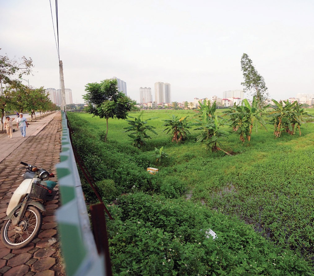 Một phần Khu đô thị Kiến Hưng thành cánh đồng rau sạch. Người dân cho biết sau gần chục năm, chủ đầu tư mới vừa xây hàng rào che chắn cho dự án