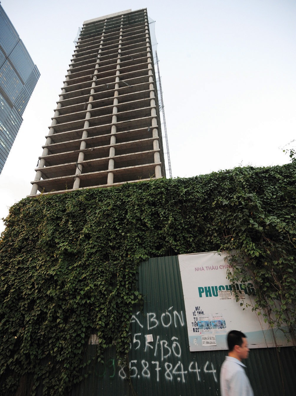 Cao ốc trên đường Phạm Hùng đang hoàn thiện dang dở thì bỏ hoang nhiều năm