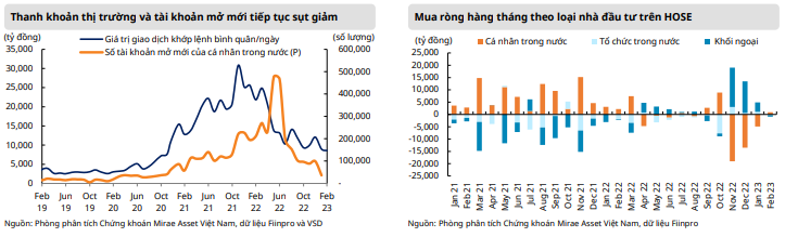 Về yếu tố nội tại, Mirae Asset cho rằng thị trường chứng khoán Việt Nam bị ảnh hưởng bởi những lo ngại gia tăng về triển vọng kinh tế xấu đi, cũng như sự bất ổn trên thị trường bất động sản và tài chính trong tháng 2.