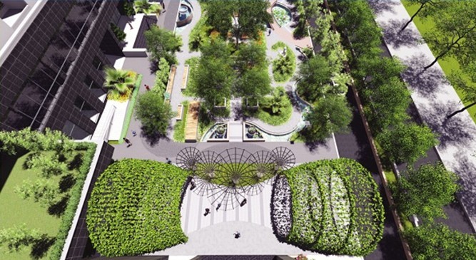 Các căn hộ có thể nhìn ra khu vực tiện ích cảnh quan xanh mát của dự án