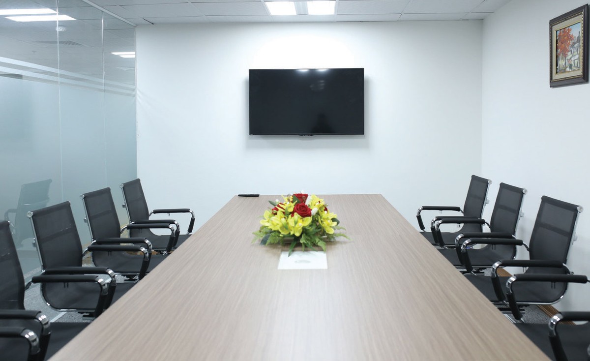Phòng họp chung với đầy đủ các tiện nghi như mạng internet, wifi, màn trình chiếu...