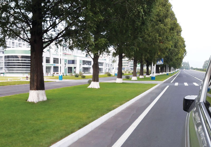Trên đường từ sân bay về thủ đô Bình Nhưỡng, dọc hai bên đường là những thảm cỏ, hàng cây xanh mướt được quy hoạch quy củ, kỳ công. Đường phố sạch đẹp, thanh bình, người dân vui vẻ, bình thản đi lại dưới trời nắng chang chang mà không cần mũ nón hay bất kỳ dụng cụ nào che chắn nào. Thỉnh thoảng lắm mới thấy một vài người dùng những chiếc ô lóng lánh đầy ren giống như các cô tiểu thư của thế kỷ 18 vậy.