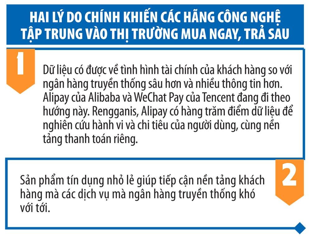 Điển hình, Shopee đã cung cấp giải pháp Spaylater hay Shopee Paylater ở một vài thị trường. Riêng tại Indonesia, Shopee đang tính lãi và phí ở mức 2,95%/tháng hay 35,4%/năm. Grab, Gojek cũng sẽ triển khai mô hình tương tự là tính lãi và phí đối với người tiêu dùng.