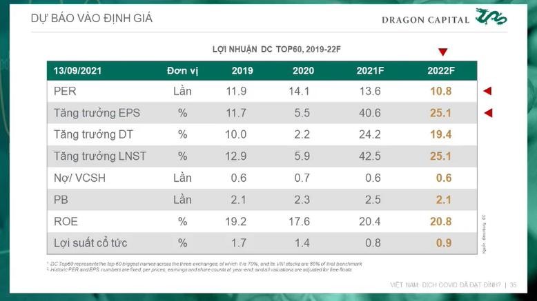 Nói về dự báo và định giá, Dragon tính toán, với mức tăng trưởng lợi nhuận khoảng 40-41% năm 2021, chỉ số P/E sau khi hiệu chỉnh khoảng 13,6 lần. Dự báo tăng trưởng lợi nhuận năm 2022 là 25% thì P/E chỉ còn 10,8 lần - tương đối thấp và hấp dẫn về định giá.