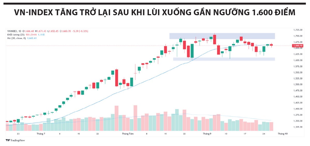 Kết thúc tuần, chỉ số đóng cửa quanh 1.660 điểm, tăng nhẹ so với tuần trước đó, nhưng thanh khoản tiếp tục suy giảm, giá trị khớp lệnh trung bình 5 phiên chỉ còn khoảng 25.870 tỷ đồng trên HOSE.