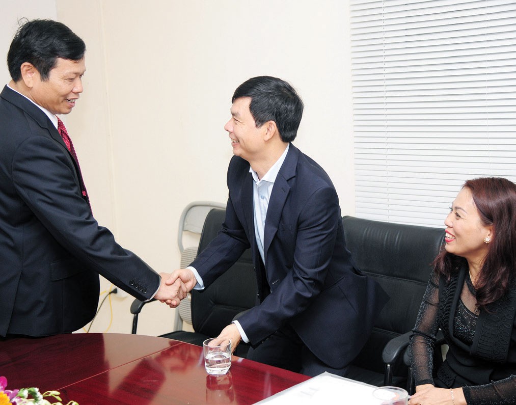 Ông Trần Đăng Lâm, Tổng giám đốc HD Mon Real Estate - đại diện chủ đầu tư Mon City - chúc mừng khách hàng đầu tiên nhận nhà