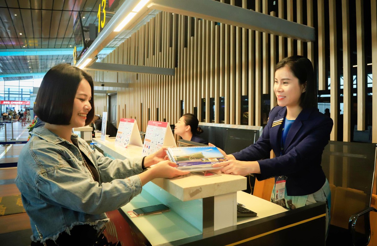 Hành khách được tặng món quà nhỏ trong ngày sinh nhật 1 tuổi của Cảng Hàng không quốc tế Vân Đồn