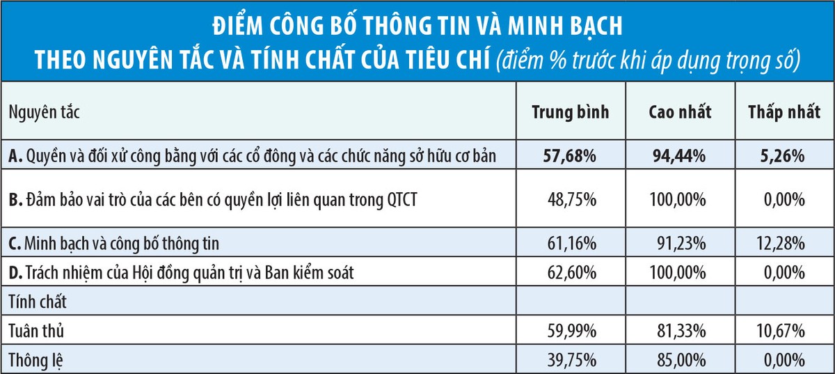 Theo báo cáo kết quả chương trình đánh giá của HNX, điểm CBTT&MB trung bình của các doanh nghiệp (tính theo trọng số) đạt 59,75% và có 90/160 doanh nghiệp có điểm cao hơn mức trung bình.