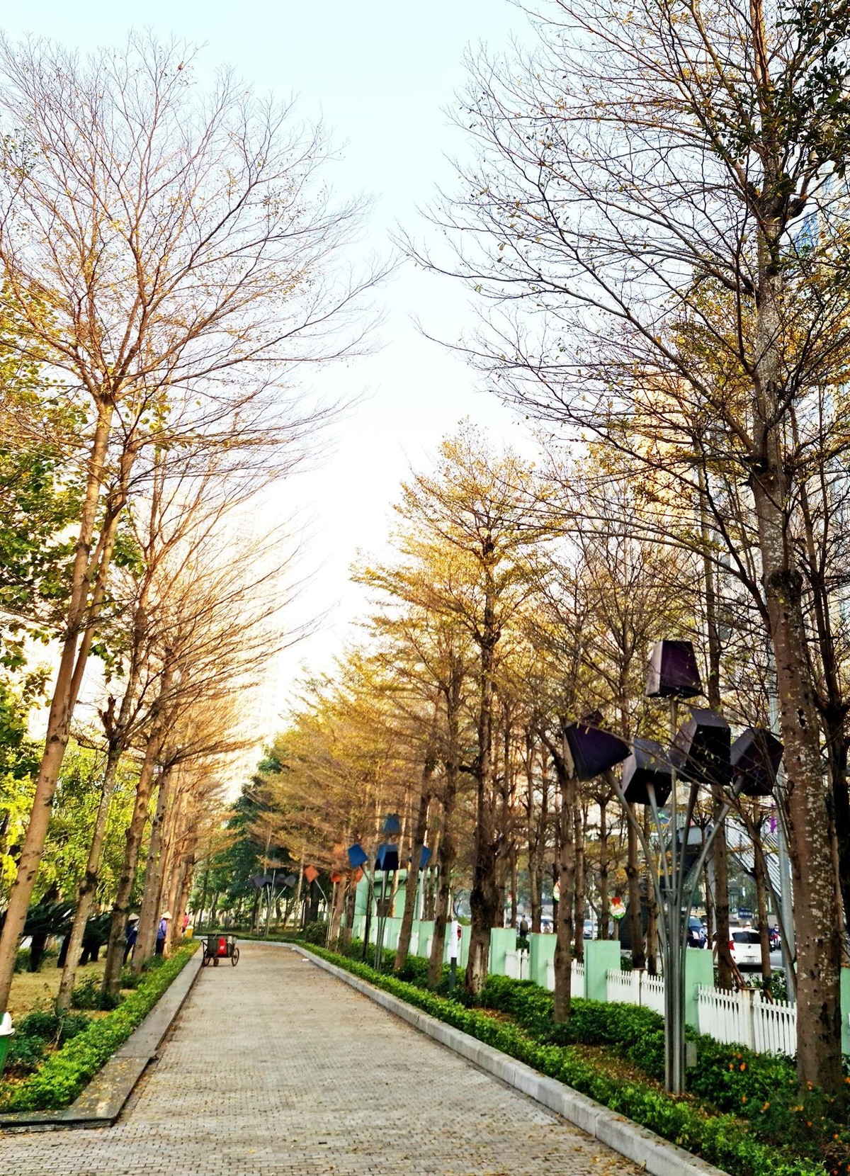 Con đường ngay gần cổng công viên Thanh Xuân lộng lẫy trong sắc vàng. |