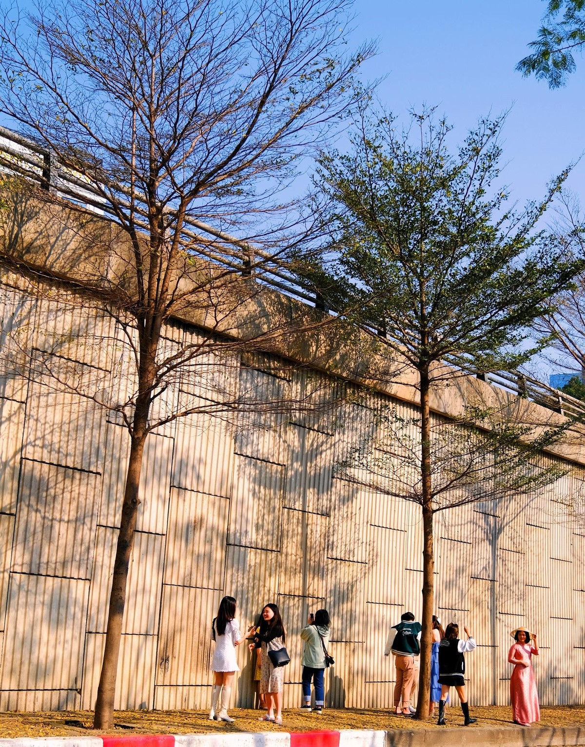 Rất nhiều bạn trẻ và người dân Thủ đô háo hức tìm đến đây chụp ảnh cùng hàng cây vàng óng. |