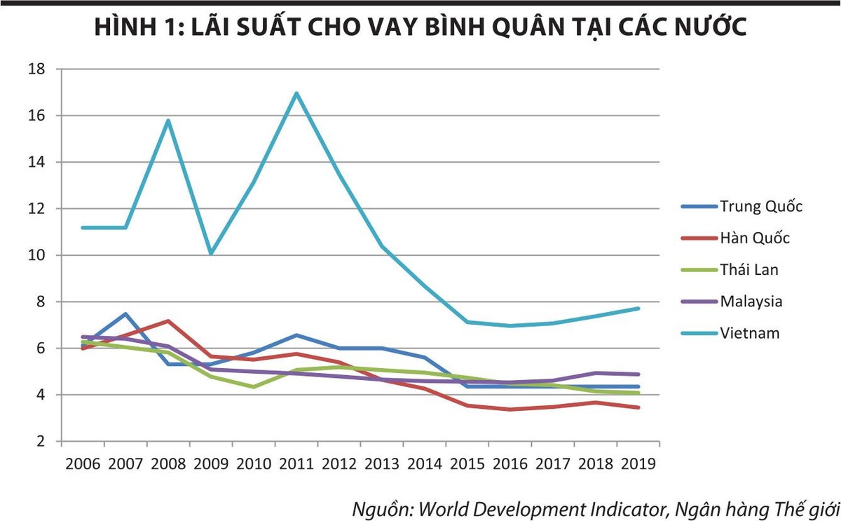 Trong giai đoạn 20215 - 2020, Ngân hàng Nhà nước đã có rất nhiều nỗ lực để thực hiện các chính sách giảm lãi suất cho vay để hỗ trợ kinh tế nhưng kết quả đạt được là khá khiêm tốn. Lạm phát năm 2019 tại Việt Nam (2,8%) còn thấp hơn Trung Quốc (2,9%), nhưng lãi suất cho vay bình quân trên thị trường Trung Quốc thấp hơn Việt Nam tới 3,4 điểm phần trăm.