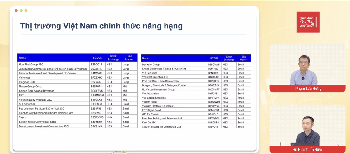 (ĐTCK) Ông Nguyễn Lưu Hưng - Kinh tế trưởng SSI (Mr X30) cho rằng, việc chính thức được nâng hạng không chỉ giúp mở rộng dòng vốn từ các quỹ theo dõi chỉ số của FTSE Russell, động thái này còn có thể thúc đẩy các tổ chức quốc tế, bao gồm cả MSCI, xem xét lại việc phân loại thị trường Việt Nam.